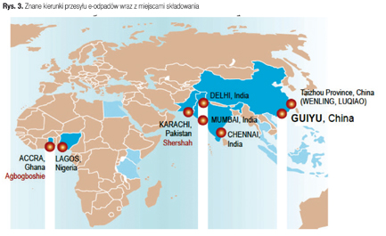 Największe składowiska zużytego sprzętu elektrycznego i elektronicznego znajdują się w:
